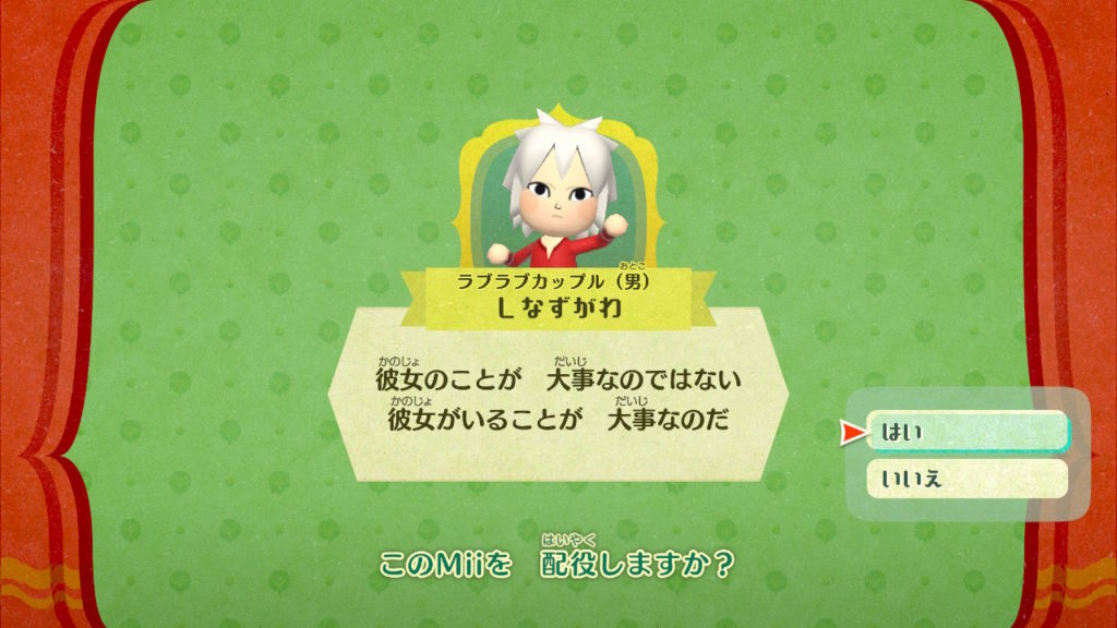 ラブラブカップル……?こういうこと?とおもってそこの配役だけ取り急ぎつくってみた